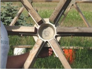 6V Geodesic Dome Calculator Build your own geodesic dome This 6V 1/2 flat base geodesic dome calculator is multi-purpose This is also a reverse geodesic dome calculator It will calculate any size of dome and display the lengths for each strut, total amount of material required, the weight of your geodesic dome and even the amount of material to cover your geodesic dome. Enter any value in any yellow box and it will calculate all other corresponding values. For example you can specify a 2-foot length for strut “B” and all other struts and related values will be calculated. Spherical radius Spherical diameter Area Perimeter Perimeter: total length of all base struts feet/meters of pipe/lumber STRUTS ANGLE 30 X “A” 4.66° 30 X “B” 5.22° 60 X “C” 5.38° 90 X “D” 5.47° 30 X “E” 5.68° 60 X “F” 5.82° 130 X “G” 5.91° 65 X “H” 6.18° 60 X “I” 6.22° Click here for assembly diagram Connecting struts There are many types of connectors available for steel and timber geodesic dome. For more information, click here. 160 X 6-way connectors 6 X 5-way connectors 30 X 4-way connectors OR 195 bolts 195 nuts 390 washers Struts are vertex to vertex That means end to end. But to connect them together with bolts, you need to make them longer to drill holes in them. For more information on cutting, bending and flattening struts, click here Geodesic Dome floor Your calculated dome floor surface area is SQUARE FEET Concrete Cubic feet Cubic yards 4″ slab 6″ slab 8″ slab Plywood 4′ X 8′ sheets Seating Capacity The following are guidelines based on international standards. Consult your local fire code for exact capacity. Estimated standing capacity Estimated dining capacity Estimated conference capacity For more information on capacity, click here How much will your geodesic dome weigh? Your calculated geodesic dome diameter is feet 1/2″ 3/4″ 1″ 1 1/4″ 1 1/2″ 2″ EMT Wall 0.042″ 0.049″ 0.057″ 0.065″ 0.065″ 0.065″ Lbs. kgs. STEEL SCHEDULE 40 Wall 0.109″ 0.113″ 0.133″ 0.140″ 0.140″ 0.154″ Lbs. kgs. ALUMINUM SCHEDULE 40 Wall 0.109″ 0.113″ 0.133″ 0.140″ 0.140″ 0.154″ Lbs. kgs. How much will your geodesic dome cost? The tables below show sample costs. Material prices listed below vary with suppliers and market conditions. calculated geodesic dome requires feet of pipe / lumber Galvanized pipe – Steel Schedule 40 Your estimated pipe dollar cost is: 1/2″ @ $13 /10′ length 3/4 @ $17/10′ length 1″ @ $25 /10′ length 1 1/4″ @ $34 /10′ length 1 1/2″ @ $42 /10′ length 2″ @ $55 /10′ length Structure pipe – Aluminum Schedule 40 Your estimated pipe dollar cost is: 1/2″ @ $ /10′ length 3/4 @ $ /10′ length 1″ @ $ /10′ length 1 1/4″ @ $ /10′ length 1 1/2″ @ $ /10′ length 2″ @ $ /10′ length Structure pipe – EMT Your estimated pipe dollar cost is: 1/2″ @ $5.50 /10′ length 3/4 @ $ 8.80 /10′ length 1″ @ $18 /10′ length 1 1/4″ @ $19 /10′ length 1 1/2″ @ $22 /10′ length 2″ @ $3 2/10′ length Cover: approx. s.f. $ COST Canvas 20 oz. ($1/s.f.) Canvas 42 oz ($1.50/s.f.) Poly 3 mil ($0.05/s.f.) Poly 6 mil ($0.06/s.f.) Marine Shrink Wrap 7 mil. ($0.08/s.f.) Industrial fire-retardant Shrink Wrap 12 mil ($0.23/s.f.) Aluminet 70% shade cloth ($0.35/s.f.) Tyvek (housewrap) ($0.41/s.f.) Wood struts Your estimated wood dollar cost is: 2″X4″ @ $0.35 foot (avg.) 2″X6″ @ $0.50 foot (avg.) 2″X8″ @ $0.70 foot (avg.) Plywood 1/2″ ($25/ 4′ X 8′) OSB 1/2″ ($9/ 4′ X 8′) For more information on covering your geodesic dome, click here Anchoring your geodesic dome Smaller geodesic domes do not require massive anchoring; many will use long ground screws or rebar bent in the shape of a “U”. But for a more solid, safe and permanent solution, concrete is poured to create piers. Many also use them as a base and frame for a riser wall. as a rule for large permanent structures piers should go past the frost line and down to the bedrock. Rebar should be included to strengthen any pier. 10″ Circular Pier Length Cu. feet Cu. yard 60lb. bags 80lb. bags 4′ 2.18 0.08 4.4 3.3 6′ 3.27 .12 6.5 4.9 8′ 4.36 .16 8.7 6.5 12″ Circular Pier Length Cu. feet Cu. yard 60lb. bags 80lb. bags 4′ 3.14 0.12 6.3 4.7 6′ 4.71 0.17 9.4 7.0 8′ 6.28 0.23 12.6 9.4 16″ Circular Pier Length Cu. feet Cu. yard 60lb. bags 80lb. bags 4′ 5.59 0.21 11.2 8.4 6′ 8.38 0.31 16.8 12.6 8′ 11.17 0.41 22.3 16.8 20″ Circular Pier Length Cu. feet Cu. yard 60lb. bags 80lb. bags 4′ 4.36 0.16 8.8 6.6 6′ 6.54 0.24 13 9.8 8′ 8.72 0.32 17.4 13 Assembly Diagram Be Sociable, Share!
