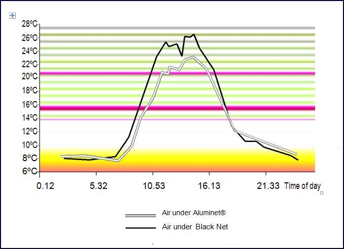 Increases yieldsBetter temperature control, together with optimized light management, ensure maximum yield from your greenhouse. Aluminet® screens raise plant temperatures at night, avoid overheating in the day and improve photosynthesis by increasing the amount of scattered light. |