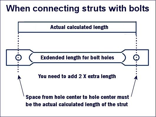 - If struts overlap (i.e. bolted together) you’ll need to make them longer to keep the correct length.