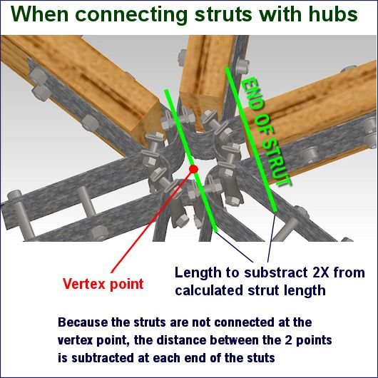 - If struts are connected with a hub, you need to subtract the length between the strut end and where they are supposed to meet. Subtract that length twice because both ends of your strut are connected to a hub.
