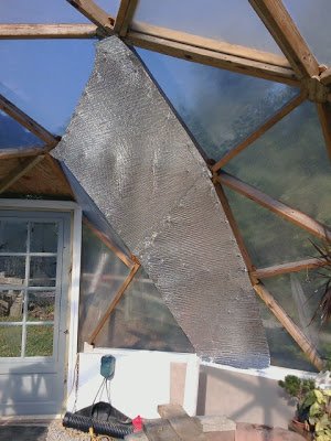 First I started hanging the Reflectix (semi-rigid bubble wrap insulation) above the pond:
