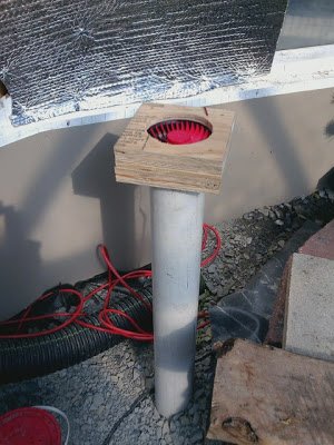 When the sun came out I stuck my face to the end of one tube and found that air is moving quite fast through the system. Now I just need a thermometer with some temp sensors to stick down there and test.