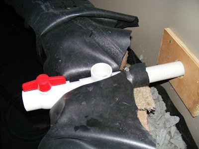 Inside, I have a shutoff valve to keep water out when I don’t want it. The open T junction is part of my future sink system. It will allow sink runoff to exit and run out the back of my yard.