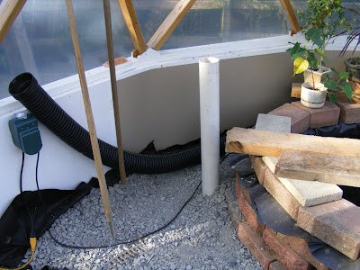I really have no way of testing the effectiveness of this system. I is pretty much just a good theory that pumping heated air underground during the day will radiate up at night. I guess I could disconnect and test the nighttime temps with and without the fan running, and maybe I will do that when it gets really cold…