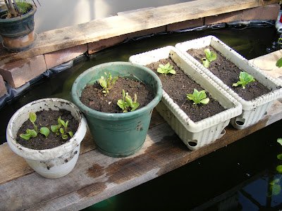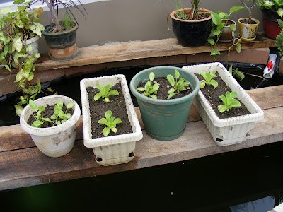 I couldn’t wait to get the flower beds in, so I put some lettuce and spinach in pots. I started them in my basement under lights, and since it was time to transplant anyway, I thought I would try out the greenhouse.