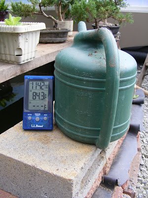 is the average between outside and inside. Today the high was 52 and the greenhouse stayed a steady 63. It felt great inside. Granted, a front blew through yesterday and brought Fridays 80 degree weather way down. But still very encouraging to know that it can handle a 24 hour dip in the weather. Very high humidity, but the tropical plants seem to be loving it. We still have yet to get our first frost, and that will be the real test.