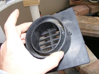 I set up a pump temporarily to keep the water moving and aerated for the fish. I thought it would be a good idea to put the pump inside this bait bucket. It will keep it off the floor and the away from the muck (that will inevitably develop) and the perforated bucket lid makes a great pre-filter.