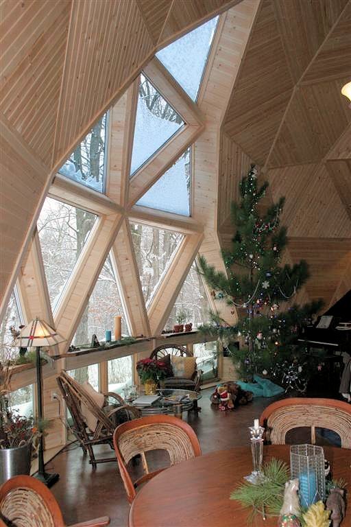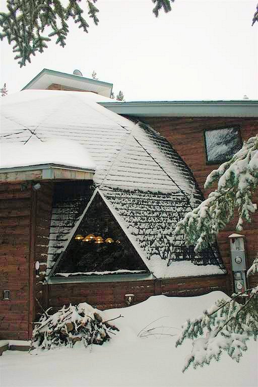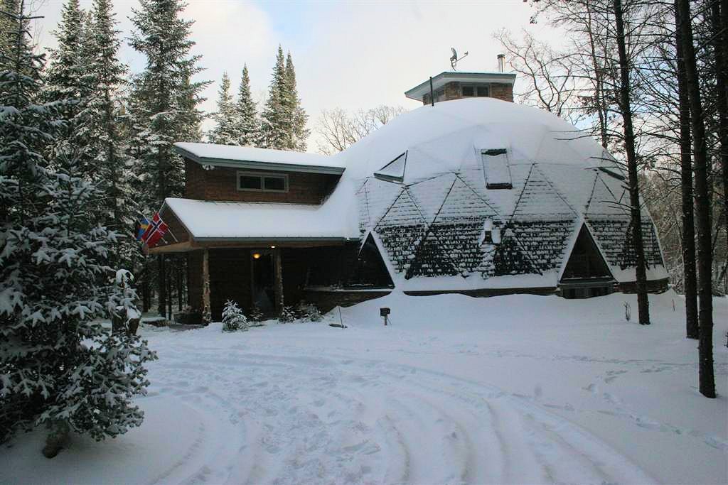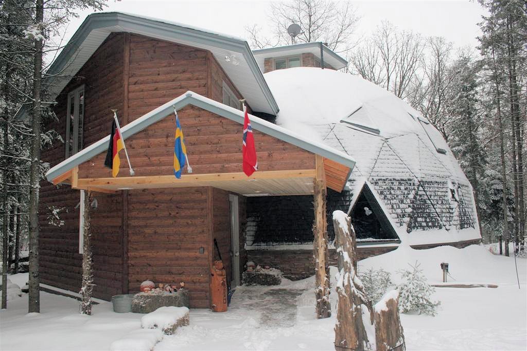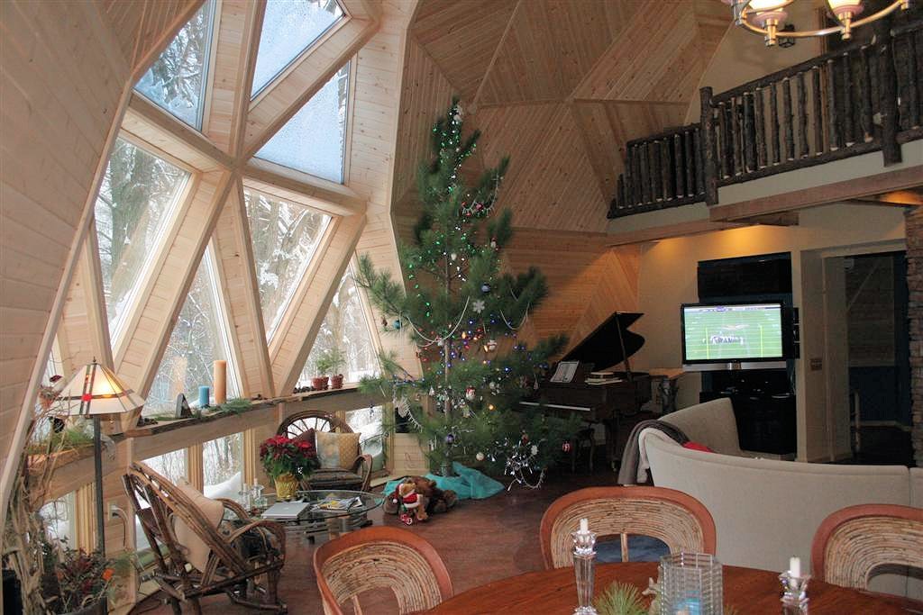 60-70 people drove through 4″ to 12″ of blowing snow and sleet to attend the grand opening of our Bear Creek Dome. Bedecked with wreaths in the halls and a 15′ high Norway Pine Christmas tree, everyone enjoyed the holiday cookies and the warm wood interior of Bear Creek Dome.