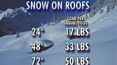 Snow: Snow loads create even greater stress on a geodesic structure. A typical roof on a house is engineered to support 20-25 lbs per square foot. As you can see on the image below a small roof of 1200 square feet (2 slopes of 20′ X 30′) with 24″ of snow weighs 20 400 pounds or more than 10 tons.