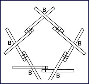 The first stage in the assembly of the dome is the construction of the pentagon at the top of the dome. This process employs 5 “B” crosses.