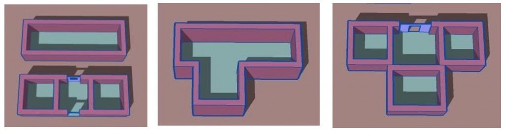 If long or bent shaped structures are needed where little reinforcement material is available, separate compact shapes can create safer structures. Lighter walls and roofing or temporary tarps can quickly be added between separate earthbag structural rooms.