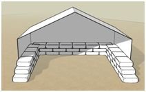 Simple shelters of 15” (38 cm) wide bag walls can be built to 7’- 9’ (2.1 – 2.7 m) wall heights.