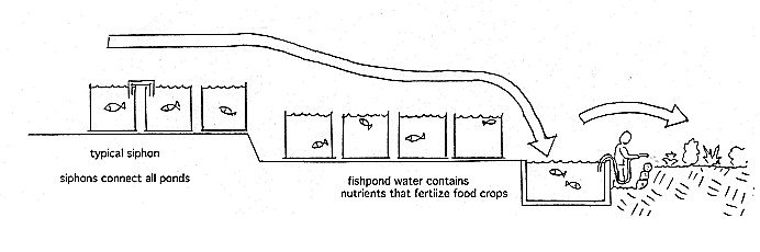 Inside a bioshelter, no rain falls. Conventional practice, however, is to send the rainwater to a drain and bring in other water to irrigate the plants and soil. Ideally, rainwater should be caught on the roof, channeled inside, and distributed by gravity to the plants, ponds, and soil.
