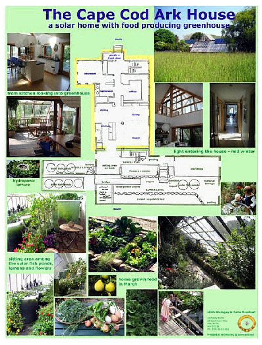 From 1971 to 1991, the New Alchemy Institute conducted research and education on behalf of the planet. Among its major tasks was the creation of ecologically derived human support systems – renewable energy,Agriculture, aquaculture, housing and landscapes. One of its major achievements was the testing of bioshelters –solar greenhouses which enclosed ecosystems – food crops, fish ponds, soil life, and indoor wildlife to control pests.The Cape Cod Ark is a research bioshelter built in 1976.