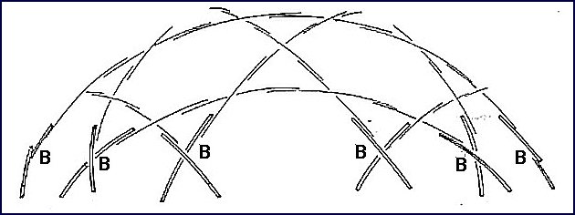 The fifth stage uses ten B crosses to close ten triangles. Six of these crosses can be seen in the elevation (diagram) above.