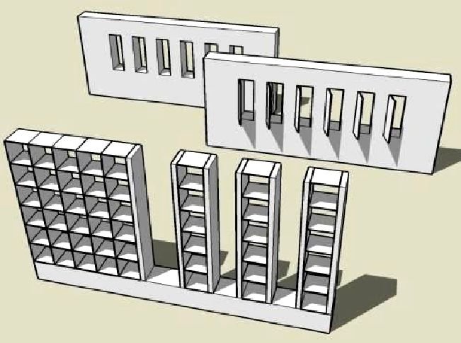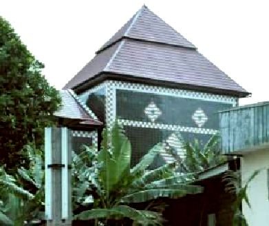 Among some people pinnacles or buttresses added to courtyard walls symbolize protection because they look like the ancient shrines called ‘pillars of the dead’ and the pinnacled mosques. These sloping pier shapes could be easily used in a new building.