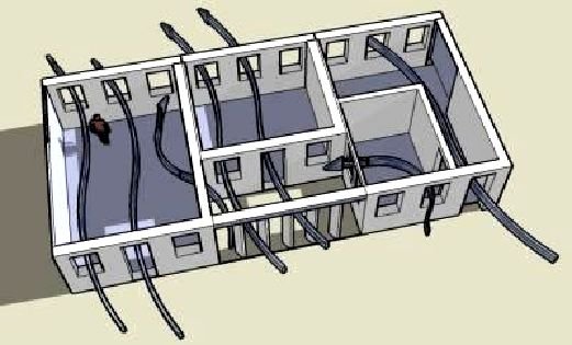 Examples of layouts and construction suggestions for building light earth with earthbag are in Earthbag Building in the Humid Tropics. Sketches of house shapes for non-hazardous areas are in Simple Earth Buildings for the Humid Tropics. Both of these will be available at www.earthbagbuilding.com.