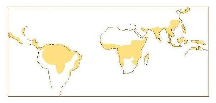 Hot-humid inland areas of the world have high humidity and temperatures that rise and fall slightly every day. In the warm and humid zone of central Africa, southern Asia, and northern South America temperatures go from 75- 908F, and the humidity may be frequently between 90 and 100%.