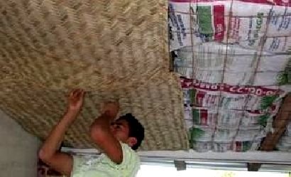 Any of these may work well under a metal roof. Wire or plastic mesh can be fastened between collar ties or under roof trusses to hold insulation in bags. Woven grass mats or fabric fastened below them would make an inexpensive, attractive ceiling. But the simplest way to keep rooms cool and quiet may be to bind reeds with wire or cord into thick flexible batts to use as an insulating ceiling that can be replaced periodically.