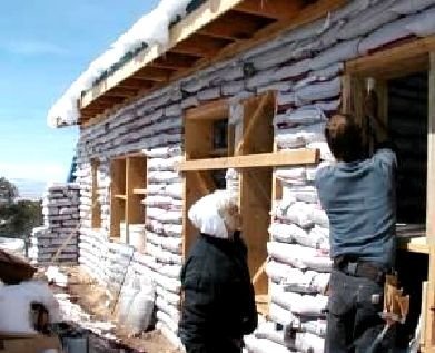 The cheapest and easiest way to build a solid building is with a system called earthbags. If nearby pumice or volcanic gravel can be added, it may also make the most comfortable building. Flexible form rammed earth or earthbag uses the strength of woven fabric bags while it dries. Because it is tamped, it combines some of the properties of rammed earth without the need for heavy forms.